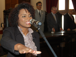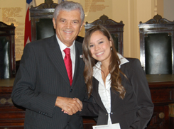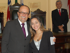 Em seguida foi realizada a leitura do compromisso, feita por Vivian Vasconcelos dos Reis Santos, que tirou a nota mais alta no Exame de Ordem, e entregue as carteiras aos novos advogados pelos componentes da alta mesa, composta também pelo Vice-Presidente da OAB-BA, Antônio Menezes, o Secretário Geral Nei Viana, o Secretário Adjunto André Godinho, o Diretor Tesoureiro Ary Moreira, o membro do Tribunal de Ética e Disciplina, Manoel de Souza Dias, o Presidente da CAAB, David Bellas, o Conselheiro Seccional Sérgio Paiva, o Vereador Geraldo Junior, a Professora Lorena Brandão Portela, os advogados Élbio Palmeira e Jairo Andrade de Miranda, a advogada e ex-Conselheira Analice Spínola, representando as mães, e dona Ivone de Carvalho Oliveira, representando os avós dos novos advogados.
