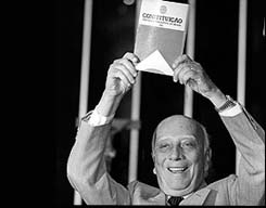 Ulysses Guimarães exibe a CF/88