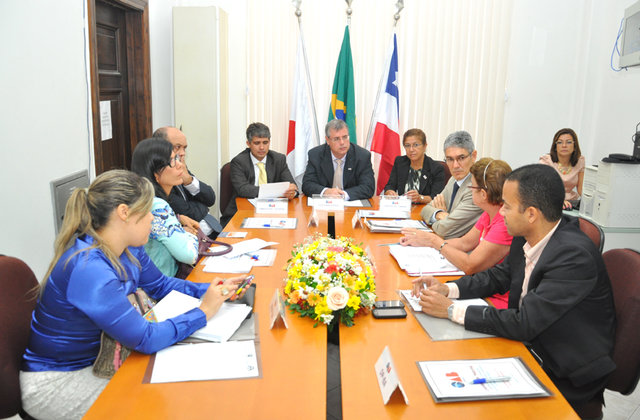 Estiveram presentes no encontro, o presidente da OAB da Bahia Luiz Viana Queiroz; o vice-presidente Fabricio de Castro Oliveira; a secretária-geral Ilana Campos; o conselheiro seccional da OAB Bahia Cássio Machado; os representantes da Associação dos Magistrados da Bahia (AMAB), Isabela Kruschewsky Pereira da Silva e Josefison Silva Oliveira; o representante da Associação dos Defensores Públicos do Estado da Bahia (ADEP), Camila Angélica canário de Sá Teixeira; a coordenadora de finanças e dos aposentados do Sindicatos dos Servidores dos Serviços Auxiliares do Poder Judiciário do Estado da Bahia (SINTAJ), Ana Lúcia Penalva; o coordenador geral do SINTAJ, Antonio Jair Batista Santos Filho e o representante do Ministério Público do Estado da Bahia (MPBA), José Vicente Santos Lima. Foto: Angelino de Jesus/OAB-BA