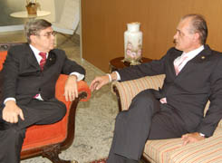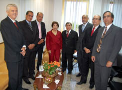 O Conselheiro do CNJ Jefferson Luis Kravchychyn e a Diretoria da Seccional estiveram na tarde desta quinta-feira, 18, com a Presidente do Tribunal de Justiça da Bahia, Desembargadora Telma Brito. Em visita à cidade para uma palestra promovida pelo IAPE (Instituto dos Advogados Previdenciários), o Conselheiro fez questão de conhecer a Presidente e dialogar sobre os problemas que afligem o Poder Judiciário baiano. Para o Presidente da OAB-BA, Saul Quadros, foi uma retomada das negociações sobre o assunto. Participaram também do encontro o Vice-Presidente da Seccional, Antônio Menezes, o Diretor Tesoureiro, Ary Moreira, o Secretário Geral, Nei Viana, o Conselheiro e Presidente da Comissão de Relações Institucionais da OAB-BA, Sylvio Garcez, e o Presidente do IAPE-BA, Marcos Barroso.