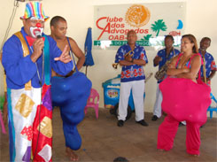 Com brincadeiras e distribuição de brinquedos, as crianças se alegraram dando a volta em redor da piscina com o Palhaço Zay Brasil neste domingo, 17, no Clube dos Advogados. Esse é o segundo ano em que o palhaço vem animar os pequenos na festa comemorativa ao Dia das Crianças, promovida pela OAB-BA. Durante todo o dia, além das brincadeiras, foram oferecidos cachorro quente, pipoca e picolé.