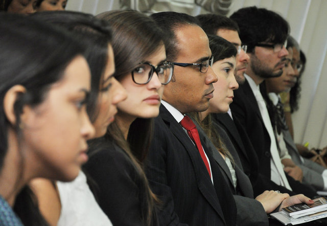 'A partir de agora com o compromisso que vocês prestaram aqui na OAB, vocês estão inscritos e poderão exercer a função de estagiários. Sendo assim, vocês passam a assessorar e lidar com advogados. Vocês vão estagiar nos escritórios de advocacia. Vocês são os depositários da esperança de nós aqui da OAB, são o sangue que se renova na advocacia e devem ter assim como nós, a compreensão da importância da profissão para o nosso país', declarou o secretário-geral adjunto da OAB da Bahia Antonio Adonias Aguiar Bastos, em seu discurso de abertura.