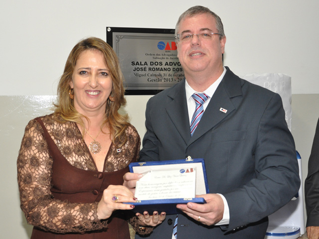 O presidente da OAB da Bahia, Luiz Viana Queiroz, e a presidente da Subseção de Jacobina, Marilda Miranda, inauguraram na tarde de quinta-feira (31) uma nova Sala dos Advogados no Fórum Bel. Sandoval de Cerqueira Santos, em Miguel Calmon. A inauguração contou com a presença do prefeito e da vice-prefeita da cidade, Dadson Roberto Sampaio Souza e Hilda Santos Requião. A sala conta com computador, mesa de reunião e sofá, proporcionando apoio ao trabalho dos advogados que militam naquela região.Estiveram presentes o conselheiro federal André Godinho, o diretor-geral da Escola Superior de Advocacia Orlando Gomes (ESA-BA) e vice-presidente da Comissão Nacional de Direitos Humanos da OAB, Luiz Coutinho, o vice-presidente da Subseção de Jacobina, Joel Nunes Victoria Junior e a juiza Lídia Izabella Gonçalves de Carvalho Lopes, que foi homenageada pelos advogados daquela comarca. Na ocasião, a Subseção da OAB de Jacobina homenageou o presidente Luiz Viana pelo trabalho que vem desenvolvendo nesses primeiros 10 meses de gestão.