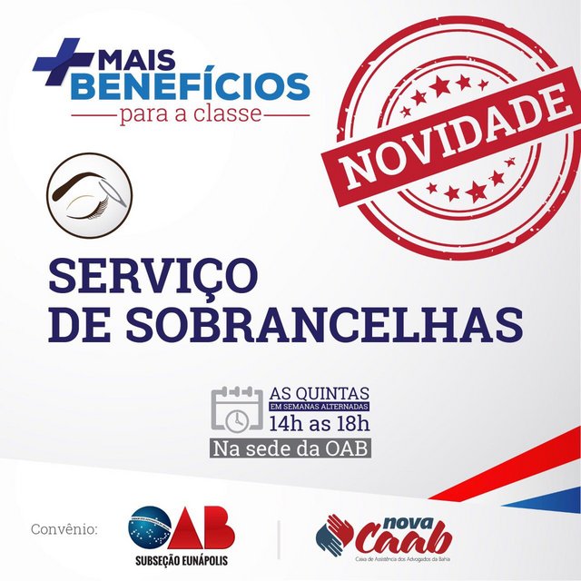 Mais Benefícios: Será Disponibilizado aos Advogados Inscritos no Quadro da OAB – Subseção Eunápolis o Serviço de Sobrancelha