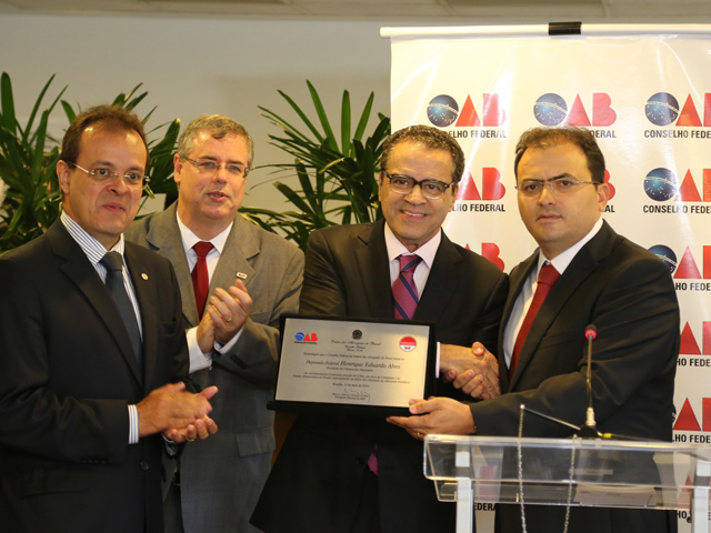 O presidente da OAB Nacional entregou ao deputado Henrique Eduardo Alves e ao senador Romero Jucá uma placa em homenagem e reconhecimento às relevantes conquistas obtidas para a sociedade brasileira. “Esta comenda é prova do apreço da advocacia e da sociedade para com o Congresso Nacional. Enquanto representante da entidade guardiã da Constituição Federal, externo aqui minha gratidão à seriedade com que vossas excelências têm tratado, também, os temas caros à advocacia”, agradeceu.