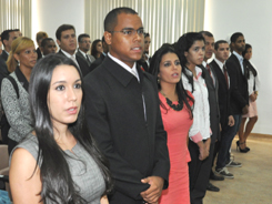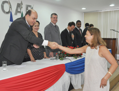 Após a leitura do Compromisso de Lei, feita pela estudante Laila Cristina Arouca de Araujo, o Presidente deu início à entrega das Carteiras.