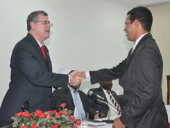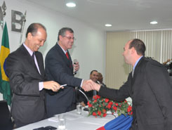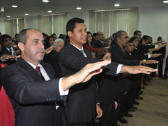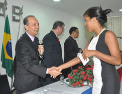 A Ordem dos Advogados do Brasil Seção Bahia entregou, nesta quarta-feira (12), carteiras da OAB-BA a 68 novos advogados, em cerimônia realizada no auditório da Ordem, nos Barris. O presidente da OAB-BA Luiz Viana Queiroz presidiu a mesa e abriu a sessão cumprimentando os bacharéis e suas famílias. Em seguida, o advogado Sérgio São Bernardo fez o discurso de saudação aos novos advogados, falando sobre a história da OAB e do papel do advogado. A leitura do Compromisso do Advogado ficou a cargo do bacharel Eduardo de Oliveira Requião Fonseca. A composição da mesa contou ainda com as presenças do tesoureiro da OAB-BA Jones Rodriges Junior, do conselheiro seccional Fabrício Bastos, do desembargador José Bispo Santana, da promotora Jussara Carvalho, do promotor Jair Gomes Fereira e do advogado Arlindo José de Santana Filho.