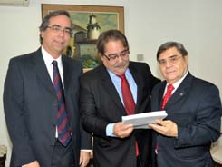 Saul Quadros e Sylvio Garcês fizeram a entrega ao Desembargador Mário Alberto Hirs