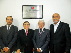 O Presidente da OAB-BA, Saul Quadros, e o Vice-Presidente, Antônio Menezes, inauguraram, na tarde da última quinta-feira (17), Sala do Advogado no Fórum Jorge Calmon, em Jacobina. O espaço leva o nome do advogado Ivanilton Costa Santos. A ocasião festiva contou com as presenças do Presidente da Subseção, Joel Nunes Victoria Junior, conselheiro seccional Sérgio Reis, da Prefeita Valdice Castro, do Comandante da PM, Major Sergio Moisés, o primeiro presidente da OAB Jacobina, José Coutinho, e o Juiz da 3ª Vara Cível de Jacobina, Jonny Markel, entre demais juízes, promotores e advogados. Familiares do advogado homenageado também estiveram presentes.