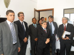 O Presidente da OAB-BA, Saul Quadros, inaugurou na manhã desta quarta-feira (12.12), a nova Sala dos Advogados no Fórum do Trabalho Teixeira de Freitas, em Candeias. A Sala conta agora com ar refrigerado, novo computador, mesa de reunião, sofá e uma TV, proporcionando mais conforto aos advogados que militam naquela justiça especializada. Estiveram presentes, além de Saul Quadros, o Presidente e a diretora tesoureira da Subseção de Camaçari, Ney Cacim e Livia Castro Araújo, as Juízas da 1ª e 2ª Varas do Trabalho, Karine Andrade Oliveira e Adla Gusmão Manchester, e vários advogados da região, como Maria da Piedade Burgos Santana e Joel Roque do Nascimento.