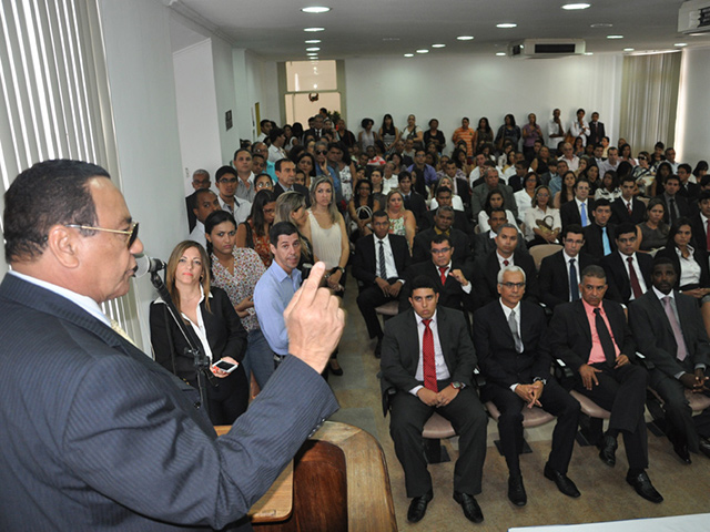 Na tarde desta segunda-feira (16), 60 novos advogados receberam suas carteiras da OAB em solenidade no auditório da seccional, nos Barris. A mesa-alta da cerimônia foi formada pelo vice-presidente da OAB da Bahia Fabrício de Castro Oliveira, o diretor-tesoureiro Jones Rodrigues, o conselheiro seccional Daniel Athayde, o advogado Wellington Figueiredo e o ouvidor-geral da Ordem Adilson Affonso de Castro, que fez a saudação aos novos advogados, falando sobre responsabilidade, esperança e ética. A bacharel Suiá Santana Figueiredo leu o termo de compromisso, acompanhada pelos colegas.