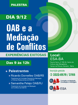 Local: ESA-BA, na Rua do Carro, no Campo da Pólvora., ao dado do Fórum Ruy Barbosa Palestrantes: