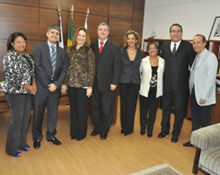 .Foto: Angelino de JesusNa tarde da última quinta-feira (25), o presidente da OAB-BA Luiz Viana Queiroz recebeu a visita de cortesia da juíza Nartir Dantas Weber, presidente da AMAB (Associação dos Magistrados da Bahia). A magistrada retribuiu a visita que o presidente da OAB fizera à sede da AMAB. OAB-BA e AMAB destacaram no encontro que as duas carreiras podem e devem dialogar para enfrentar problemas comuns, mantidas suas diferenças. A juiza Nartir esteve acompanhada pela juiza Maria de Lourdes Medauar e a advogada Esmeralda Oliveira. Estiveram presentes também o vice-presidente da OAB-BA, Fabrício de Castro Oliveira, a secretária-geral, Ilana Campos, o diretor tesoureiro, Jones Rodrigues e o conselheiro federal Maurício Vasconcelos.