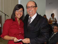 Após a leitura do compromisso, feita pela estudante Gabriela Cavalcante Costa Pinto, as carteiras foram entregues pelos componentes da alta mesa, composta pelo Diretor Tesoureiro Ary Moreira, o Secretário Geral Nei Viana e os advogados Geraldo Lima de Oliveira e Maria do Socorro Costa Pinto.