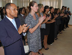 Na oportunidade, o Vice-Presidente da Seccional, Antonio Menezes, reforçou a obrigatoriedade da ética na profissão e a importância do Tribunal de Ética e Disciplina (TED) no processo de seleção e fiscalização de profissionais da carreira. Após o juramento, lido pelo universitário Wellington Lessa Lisbôa, os estudantes foram declarados estagiários.