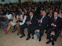 A Paraninfa da turma, a Presidente da Comissão do Estágio e do Exame de Ordem da OAB-BA, Christianne Gurgel, falou sobre a importância da decisão do STF sobre o Exame de Ordem. ''''Isso nos traz muito orgulho. Estou orgulhosa por ser advogada'''', disse. Compuseram a Mesa o Presidente Saul Quadros Filho, a Presidente da Comissão de Exame de Ordem da OAB-BA Christianne Gurgel, o Ex-Presidente da OAB-BA, Rubem Márcio da Fonseca, Edna Maria de Souza Alcântara e Marcus Vinicius Cruz Mello da Silva e os Conselheiros da Seccional Altamiro Viridiano e Octávio Miranda.