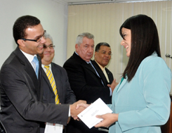 Foi feita então a leitura do juramento pelo estudante Pedro Braga de Castro Souza. E o Vice-Presidente Antônio Menezes deu início à entrega das carteiras.