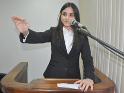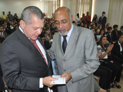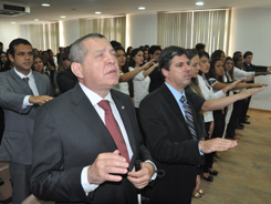 Em seguida, a leitura do Termo de Compromisso foi feita pela bacharela Renata Moraes Brito de Oliveira, que, entre a turma, obteve a nota mais alta no Exame de Ordem. Logo depois Saul Quadros deu início à entrega de carteiras.