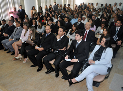 As palavras de Antônio Menezes foram seguidas da leitura do compromisso. Posteriormente, foi feita a entrega das carteiras. A Mesa da solenidade foi composta, além do Presidente da OAB-BA, Saul Quadros, do Vice-Presidente, Antônio Menezes, Secretário-Geral Adjunto, André Godinho, da Juíza do Trabalho de Itabuna, Cristiane Borges Lima, dos advogados Claudio Carvalho, Jadyr Barros, Jorge Medauar e Helena Castro, além da representante das mães, Maria Lucia Cardoso do Vale.