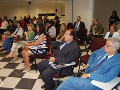 Fizeram parte da mesa David Bellas, Nei Viana Costa Pinto, o presidente do IAB, Antônio Luiz Calmon Teixeira, e a Presidente da Comissão de Orçamento e Contas da OAB-BA, Mirela Barreto de Araújo Possídio.