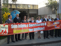 O protesto reiterou as reivindicações feitas em audiência com a Presidente do Tribunal de Justiça da Bahia, Desembargadora Telma Brito, realizada em 20/02/2011, que inclui a adoção de medidas urgentes para o preenchimento das vagas decorrentes das promoções de três Juízes titulares para a entrância final de Salvador.